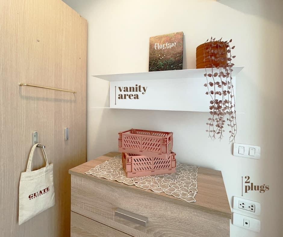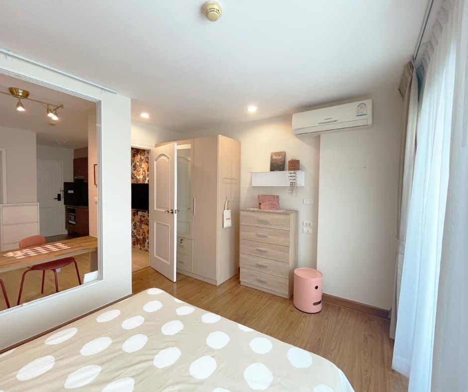 1ห้องนอน (เตียงควีนไซส์ + โต๊ะเขียนหนังสือ) + 1โซฟาเบด + 1ห้องน้ำ + สิทธิ์จอดรถ 1คัน