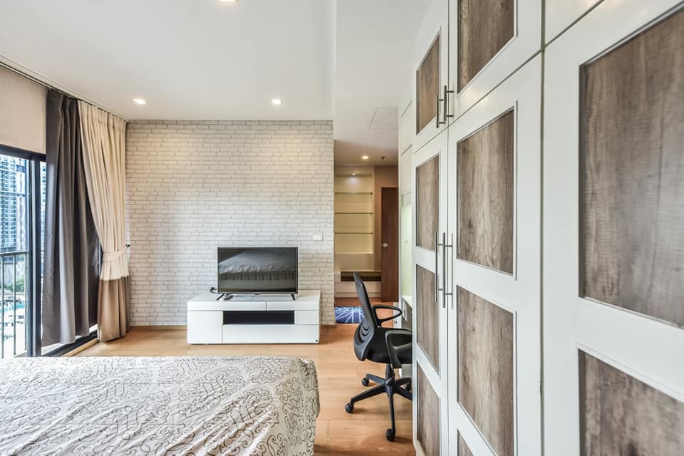 • Size 52 sqm. corner unit 1 bedroom 1 bathroom and 1 living room with 2 TVs / 2 Air Conditions / 1 Refrigerator / 1 Washing Machine and 1 Bath with water heater